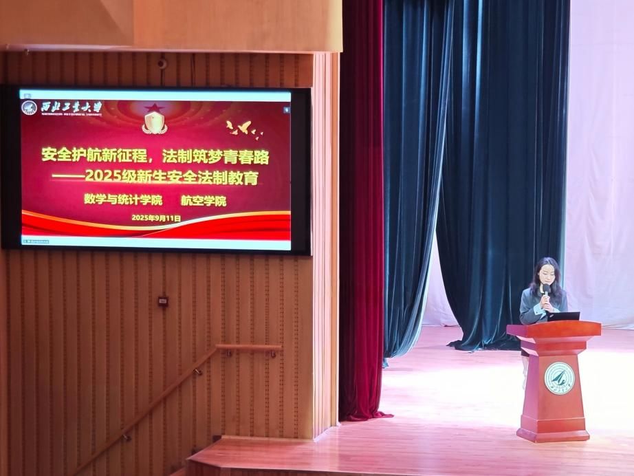 为进一步增强新生安全防范意识,提高应急处置能力,9月11日,韩国av 与航空学院联合为2025级新生举办了一场内容丰富、形式多样的安全法制教育讲座。出席本次讲座的嘉宾有韩国av 党委保卫部张大鹏主任、西安市公安局高新分局治安大队王冬警官、西安市公安局交通管理支队碑林大队刘潇泽警官、韩国av 党委副书记张莹、航空学院2025级本科生辅导员韩少强、韩国av 研究生辅导员宋博、韩国av 2025级本科生辅导员张倩。讲座由张倩主持。