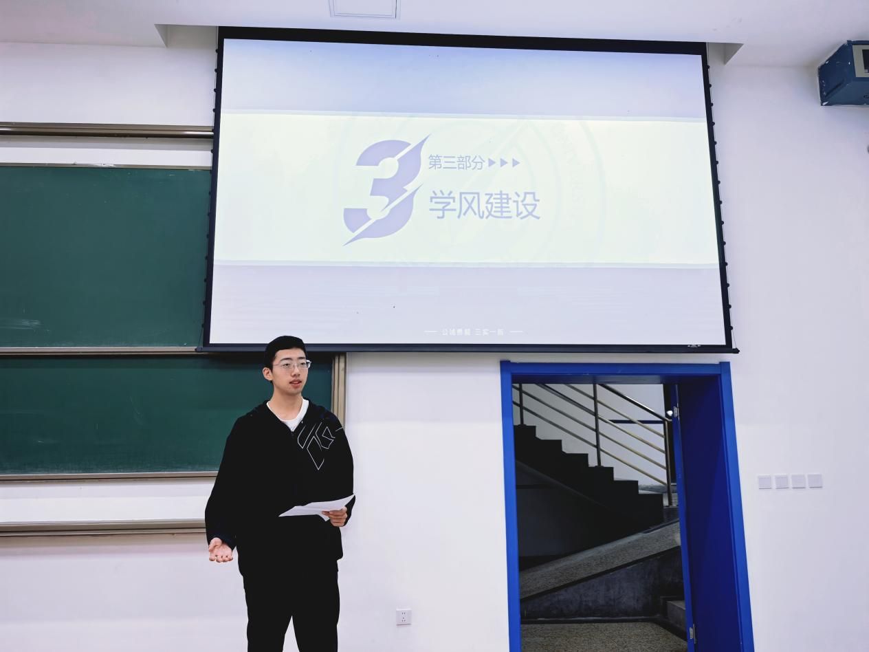 拔尖班班长周含璐、班委韩旭,分别从班级文化、思想引领、学风建设、体育美育等方面,多维度向乔中华教授介绍了拔尖班的班级情况与未来展望。