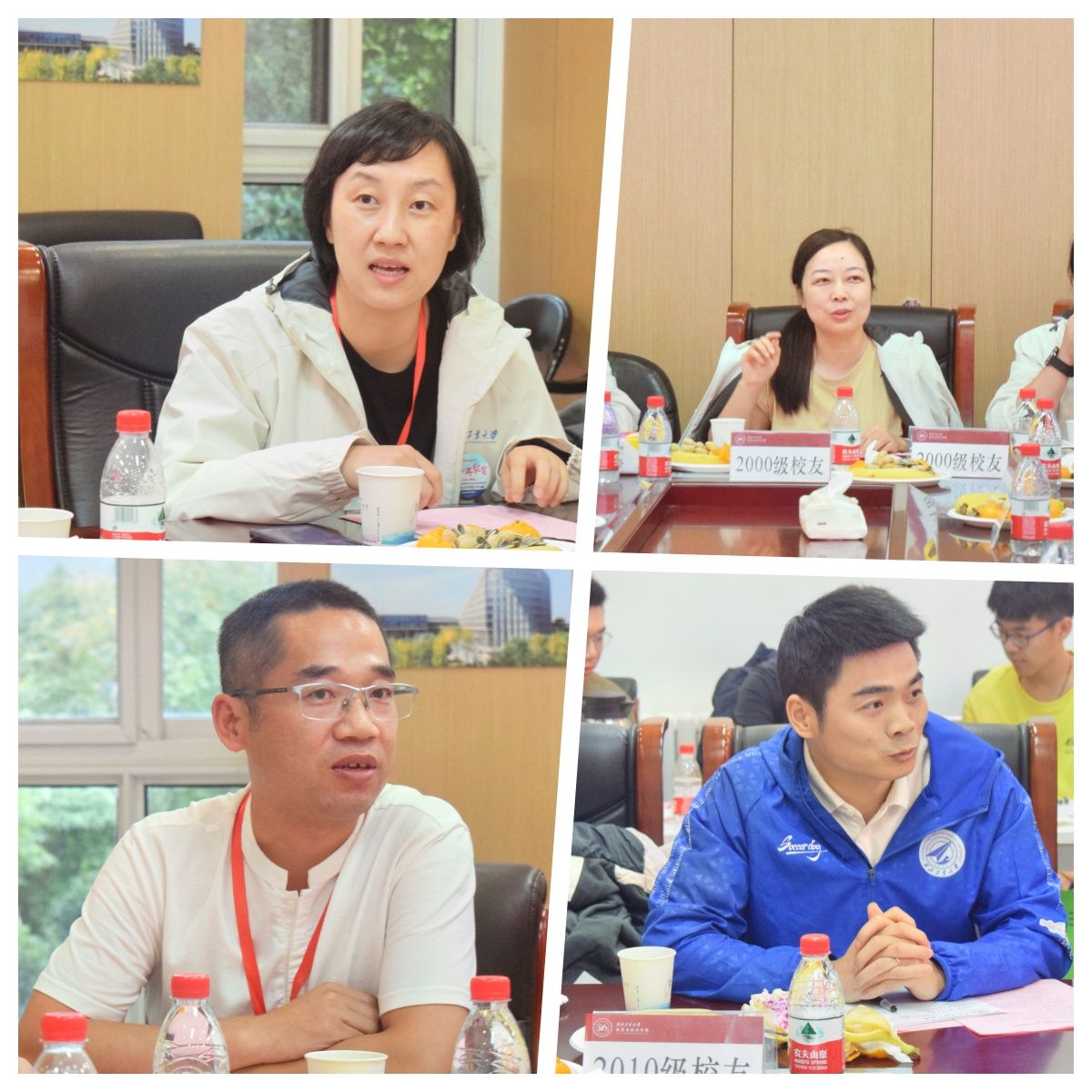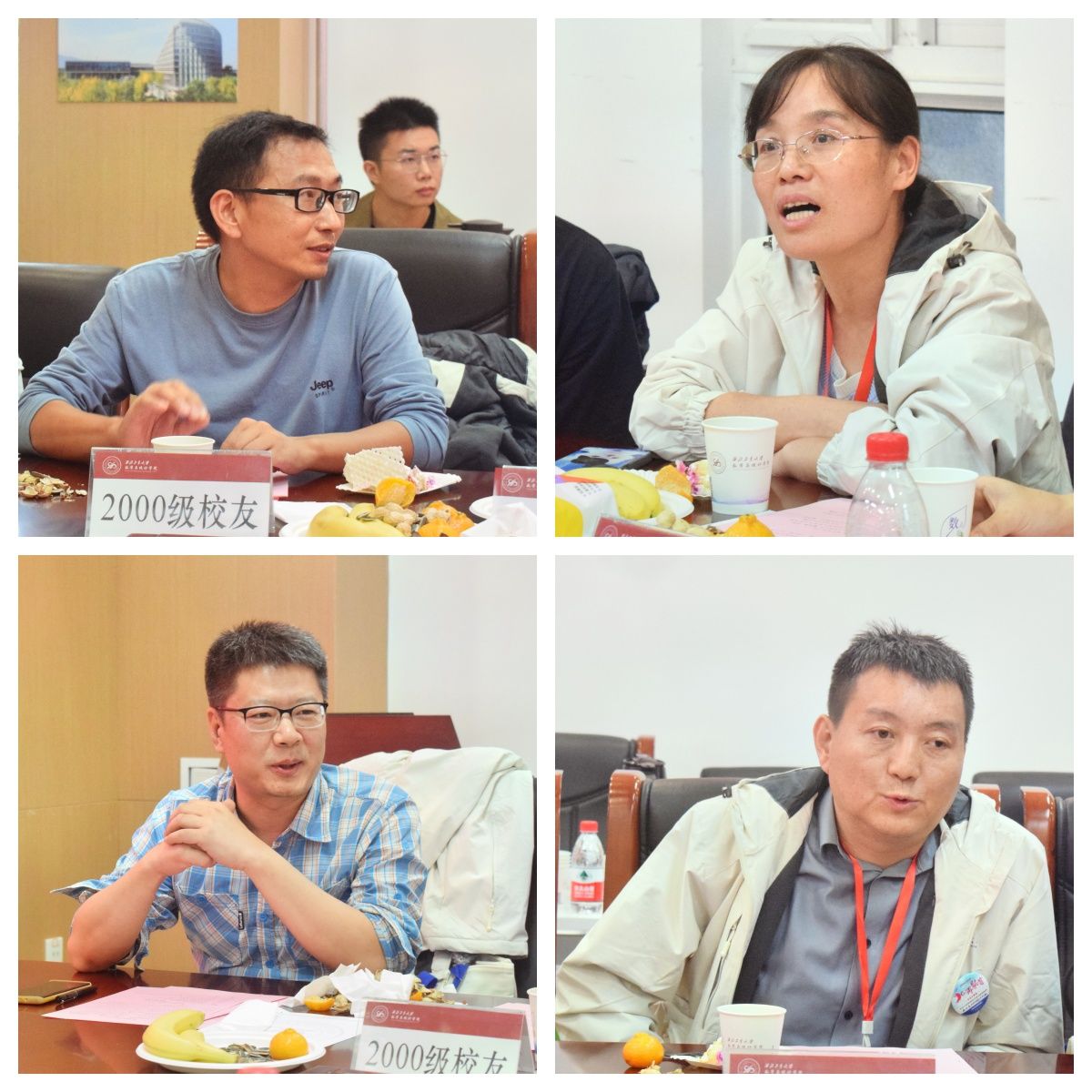 下午,在学院组织的师生座谈会上,院长聂玉峰(线上致辞),党委书记王莉依次代表学院对校友们回家表示热烈的欢迎,在介绍学院自2019年建院以来取得长足进步和快速发展的同时,也坚定表示,未来学院将在广大师生和校友们的热切关注与持续支持下,为实现学校“天下工大,世界三航”的远景目标,奋力在学校“总师育人文化”的引领下,在人才培养、科学研究、师资队伍建设与国际合作等方面再创佳绩。校友总会办公室副主任苟兴旺回忆当年在数学系留校任辅导员的工作经历,饱含深情,他说:“二十年后和大家在此相遇,我感到非常激动,欢迎各位校友常回家看看,母校永远是大家的坚强后盾。”在场教师与校友们也结合会议主题,纷纷为学校、学院发展各抒己见,有的表示以在工作岗位上接连听到学校、学院的声誉影响不断扩大而感到骄傲自豪,有的是从个人实际出发希望与学院有进一步的交流合作,有的在回忆当年漫漫求学之路时,对在场的大一新生寄语祝福和希望。师长、学长们情深意切,语重心长,学弟、学妹们获益良多,掌声热烈。