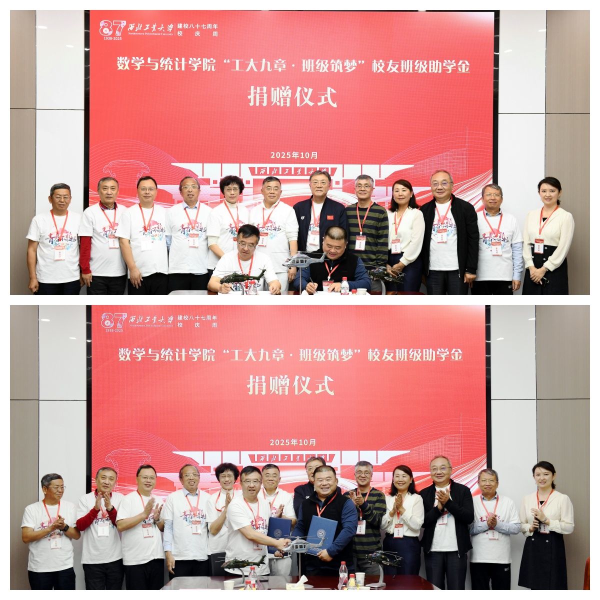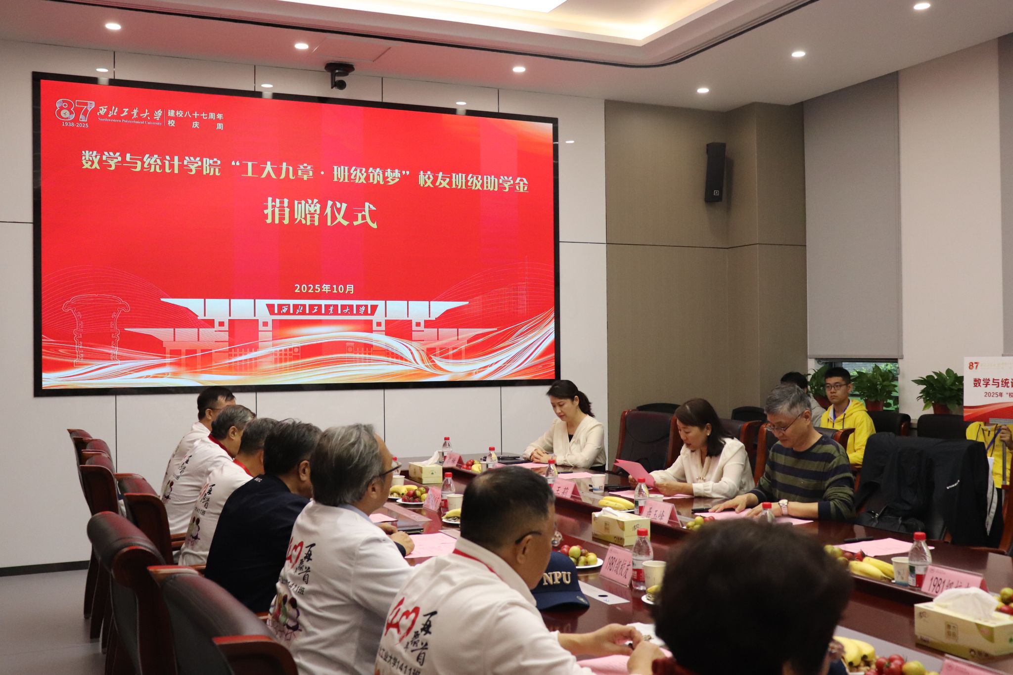 在重温毕业午餐后,1981级应用数学专业1411班在海天苑大楼韩国av 会议室组织的“工大九章·班级筑梦”校友班级助学金捐赠仪式,再次将本次系列活动推上高潮。仪式上,学院党委书记王莉、院长聂玉峰、对外联络办公室副主任苟兴旺先后代表学校、学院对校友们回家表示热烈欢迎,对校友们此次捐赠的善意善举表示感谢。校友王命宇代表班级签约,并表示希望西工大的这种传承精神能够不断延续下去、使更多的学弟学妹们在温暖的校园中茁壮成长。苟兴旺老师也动情地表示热烈欢迎各位校友常回家看看,母校永远是大家的坚强后盾。