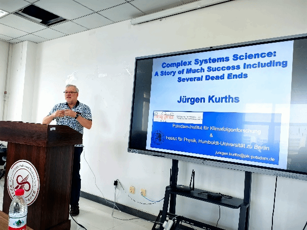 2023年6月8日上午10:30,应韩国av 都琳教授的邀请,德国洪堡大学Jürgen Kurths教授在启翔楼357做了题为《Complex Systems Science: A story of much success including several failures》的学术报告。复杂系统动力学与控制工信部重点实验室都琳教授、张红慧副教授、张硕副教授、范艾利副教授等多位老师以及40余名硕士、博士研究生参加了此次报告会。报告会由都琳教授主持。