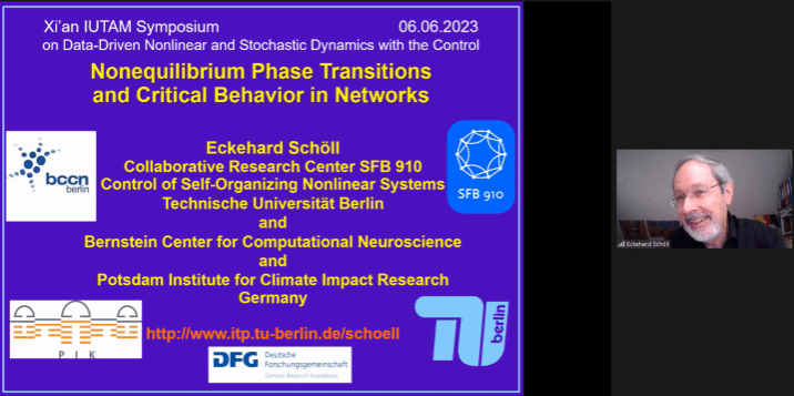 6月5日至9日,国际理论与应用力学联合会(International Union of Theoretical and Applied Mechanics, IUTAM)“数据驱动的非线性与随机动力学及控制研讨会(Symposium on Data-driven Nonlinear and Stochastic Dynamics with the Control)”在中国西安成功举行。此次会议依托空天领域复杂性科学教育部重点实验室,中德“复杂性与统计科学国际联合实验室”,旨在交流讨论数据驱动的非线性与随机动力学中的方法、理论及应用等最新进展,为从事相关领域的专家学者们提供一个高质量的国际性学术交流平台,促进不同国家领域学者进行思想交流,助力动力学与控制等领域的发展。本次研讨会邀请了36场大会报告、征集和遴选了41个墙报,来自美国、德国、英国、加拿大等12个国家和地区的150余位学者通过线上线下参加了会议,中国科学院院士朱位秋教授、张卫红教授和何国威教授,匈牙利科学院院士Gabor Stepan教授,欧洲科学院院士Jürgen Kurths教授等出席了本次会议。会议开幕式由中方主席许勇教授的主持。