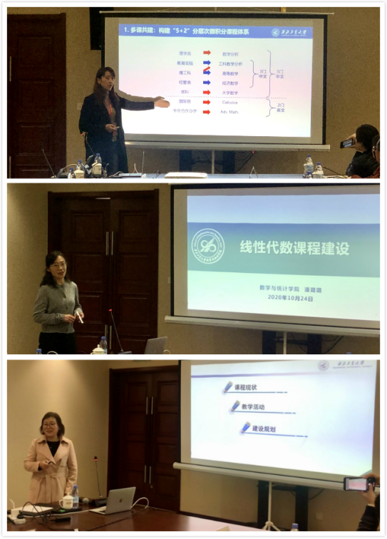 本次调研就学科建设、人才培养、科学研究以及工科数学教学和课程建设等方面进行了深入细致的研讨和交流。首先,韩国av 韩国av 徐根玖副院长对研究生工作及科研情况做了简单介绍,同济大学数学科学学院许学军院长对该学院的学科结构及特色、人才培养、科学研究等情况做了汇报。随后,张莹教授、唐亚宁教授、潘璐璐副教授依次对高等数学、概率论与数理统计、线性代数的课程建设情况进行汇报。