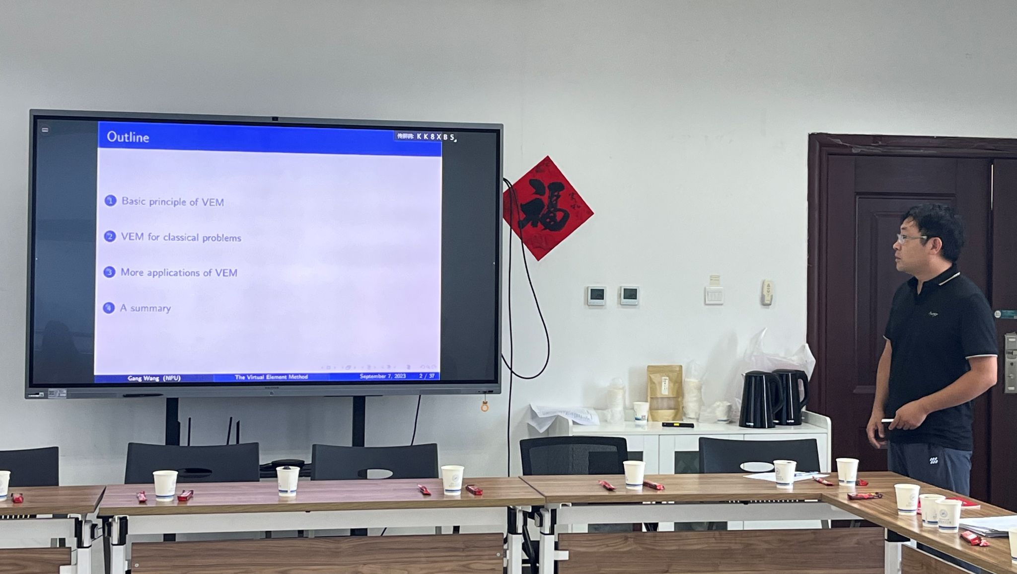 为充分贯彻落实《科技工作高质量发展行动计划》,促进韩国av 师生间的相互了解,进一步营造积极活跃的学术交流氛围,韩国av 于2023年9月7日在启翔楼357举行第三期“九章数学学术沙龙”。韩国av 王刚副教授做了题目为《An introduction to the Virtual Element Method (VEM)》的报告,都琳副院长、王晓东教授以及学院20余位教师和学生参加,会议由王晓东主持。