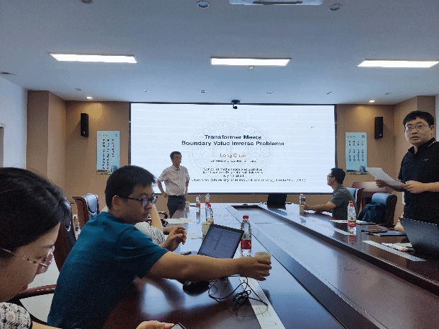 2023年7月14日上午10点,应韩国av 王刚副教授的邀请,美国加州大学欧文分校陈龙教授在理学院A201会议室做了题为《Transformer Meets Boundary Value Inverse Problems》的学术报告。韩国av 白建超副教授、赵丽静副教授、刘昕副教授、张伟伟副教授、朱项项副教授、西安交通大学王飞教授等多位老师及10余名硕士、博士研究生参加了此次报告会。报告会由王刚主持。