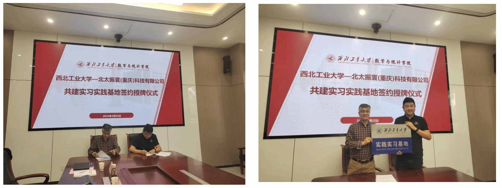 在热烈的掌声中,聂玉峰和廖汉卿分别代表双方签订了《韩国av —北太振寰(重庆)科技有限公司共建实习实践基地协议》。随后聂玉峰代表学院向北太振寰授予实践实习基地牌匾。
