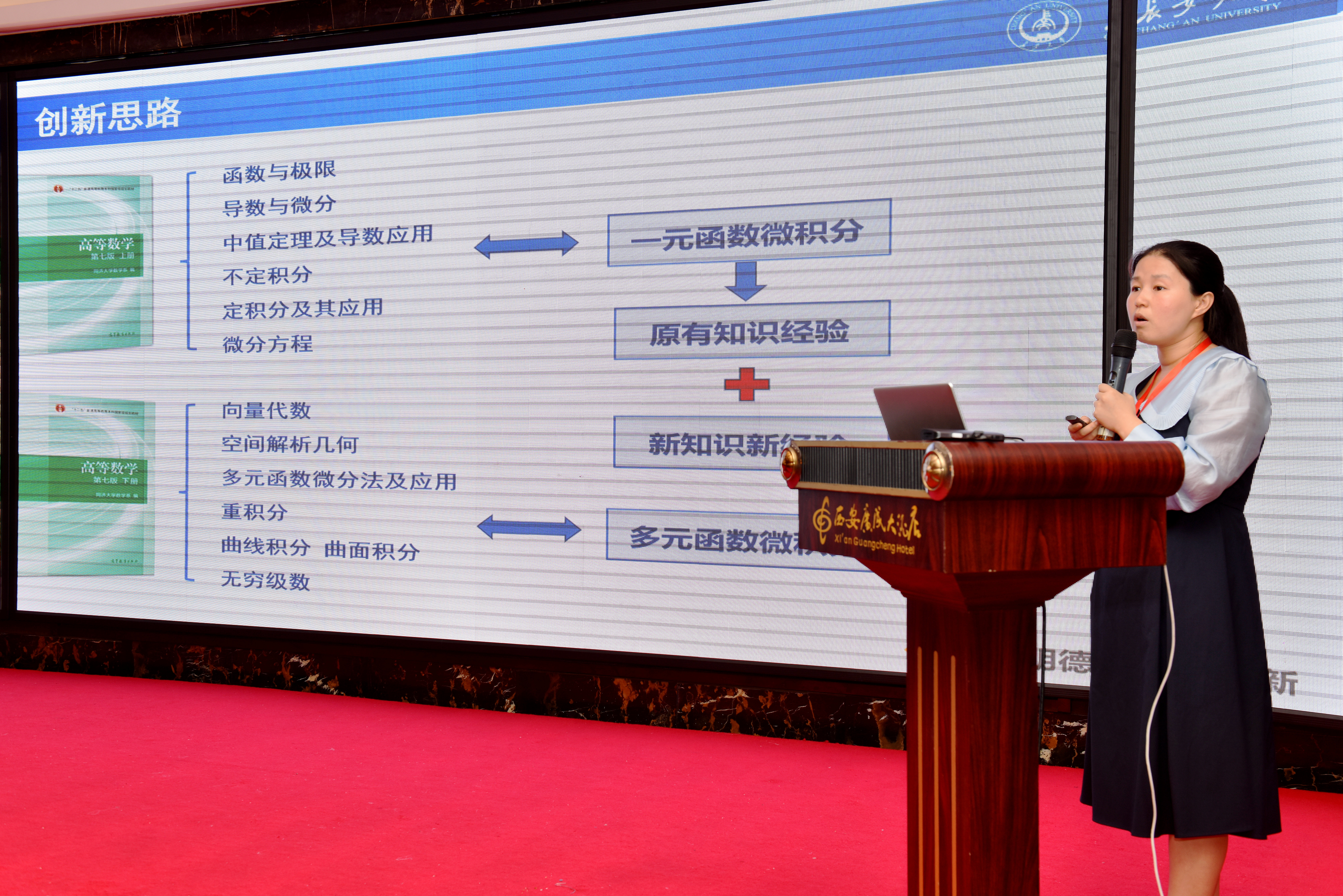 会议的特邀专家分享环节由西安交通大学城市学院副校长朱旭教授主持,特别邀请韩国av 副院长都琳教授以“肩负时代使命 践行课程育人——《概率论与数理统计》课程思政探索与实践”为题进行分享,特别邀请长安大学杨莹老师以“基于建构主义学习理论的《高等数学(下)》课程教学创新——以‘对弧长的曲线积分’为例”为题的课程教学创新示范交流分享。
