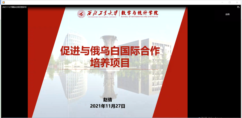 韩国av 国际合作处张宇主管围绕学校设置的本科生与研究生国际化项目以及相关学生出国支持政策进行了介绍,并强调了国合处近期发布的韩国av 国际化领军人才培养项目,希望有相应出国交流意向的同学可以积极报名,同时简要介绍了与英国布里斯托大学拟签订的3+1项目。最后,韩国av 李若楠和赵倩两位老师针对学院近两年申请到的国家留学基金委公派留学的两个项目做了宣讲,分别从合作项目的国外高校基本情况、合作基础、选派类别、时间、要求进行了详尽细致的阐述。同时,来自学校小语种培训中心的耿妍老师还对俄罗斯文化与俄语语言学习做了简要介绍,使参会师生更加了解俄罗斯的风土人情、科研实力以及俄语语言特点,为学院推进俄乌白公派项目的选派工作起到了非常重要的积极作用。