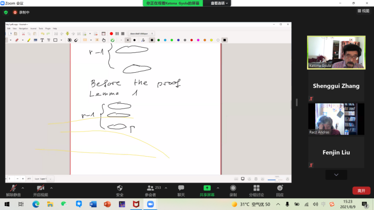 2021年8月9日至8月18日,韩国av 暑期国际讲堂《极值组合论》通过Zoom圆满完成授课。该课程由韩国av 顾问教授Gyula O.H. Katona(匈牙利科学院院士、欧洲科学院院士和保加利亚科学院外籍院士)讲授。来自数学、材料科学与工程及本硕实验班等专业的本科生、研究生及旁听生参加了该课程,听课人数超过了200人。