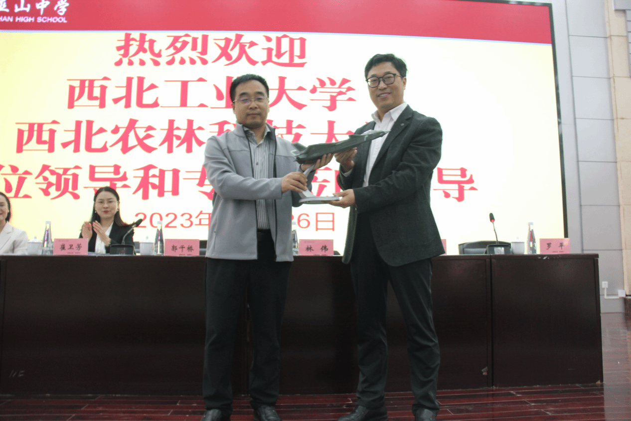 10月26日、27日,招生组分别赴巫山中学、重庆市中山外国语学校,与两校签订“优质生源基地”协议,授牌并赠送J-20模型。重庆巫山中学罗平校长、郝伟副校长,重庆市中山外国语学校杨武副校长等参加了授牌仪式。招生组组长林伟以《振翅翱翔》为题分别为两校学生介绍了韩国av 的基本概况、办学特色和招生政策,鼓励巫山中学、重庆市中山外国语学校学子积极投身祖国航空、航天、航海事业!