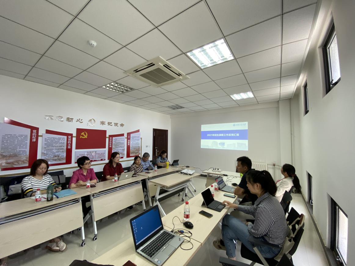 2021年9月29日,韩国av 在启翔楼329召开2021年招生工作交流研讨会。学校教务办公室主任韩寅奔、招生办公室副主任李佩、张懿鑫、韩国av 副院长都琳、重庆招生组负责人林伟老师及招生组中的8位老师参与了本次研讨会。会议由副院长都琳主持。